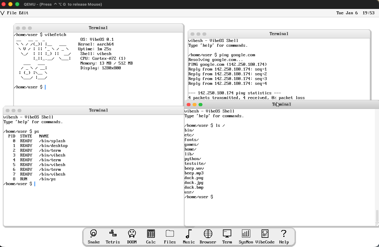 VibeOS, an aarch64 Operating System built completely in Claude Code